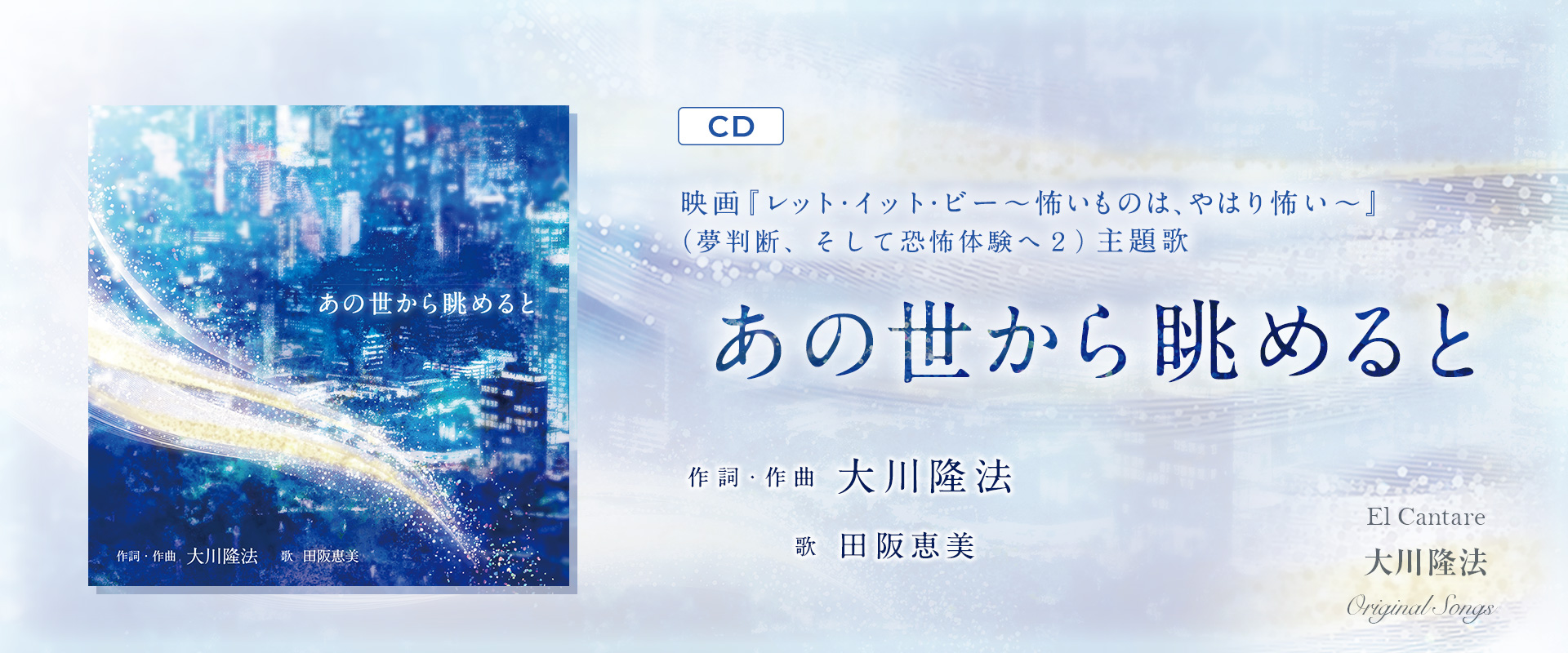 1月1日より発売中の「あの世から眺めると」が大好評発売中です! 5月12日(金)公開の弊社製作の映画『レット・イット・ビー ~怖いものは、やはり怖い~』(夢判断、そして恐怖体験へ2)の主題歌でもある本楽曲は、この世を去っ...
